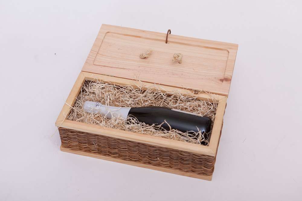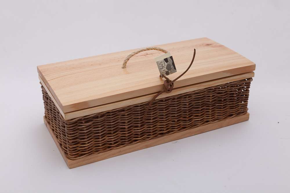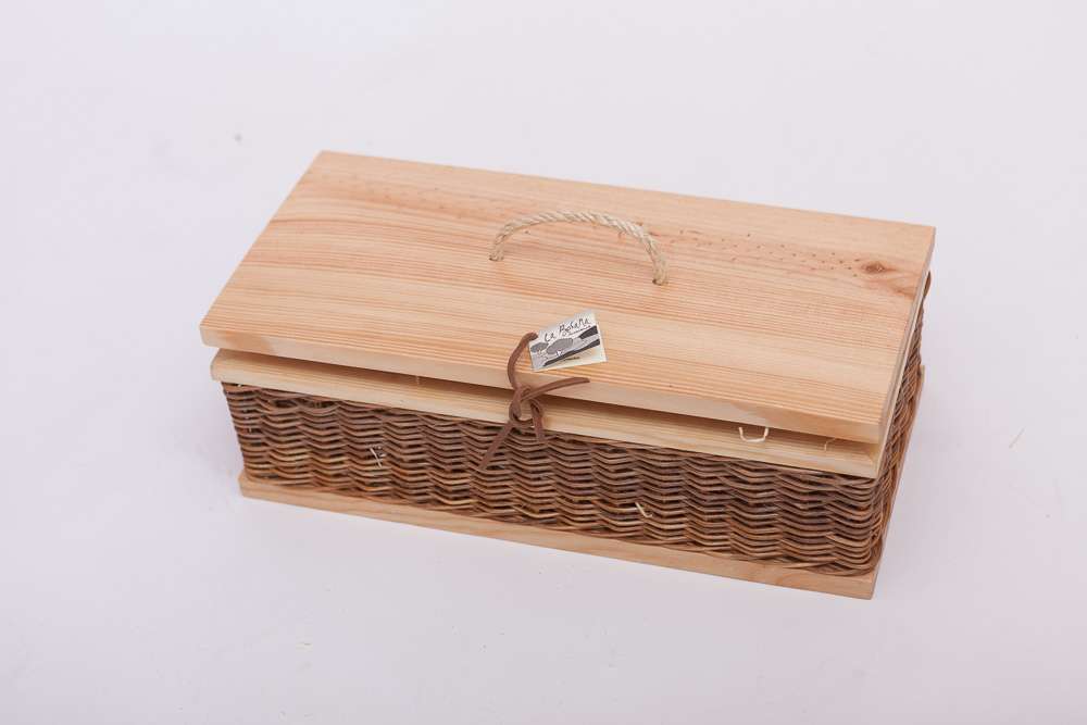Caja de madera y mimbre
