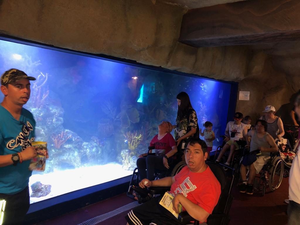 Otra de las actividades dónde hemos podido tener nuevas experiencias ha sido en Benidorm en el Paque Acuático Aqualandia, allí un grupo más reducido de personas pudimos disfrutar de toboganes acuáticos y piscinas relajantes, dónde pasamos un caluroso gran Día, por su parte el resto de personas del grupo pudieron disfrutar del Parque de animales marinos Mundomar, dónde pudieron ver y disfrutar de diferentes espectáculos con delfines, leones marinos… así como poder disfrutar de muy cerca de sus habilidades. Sin dudarlo fue un grandísimo día.